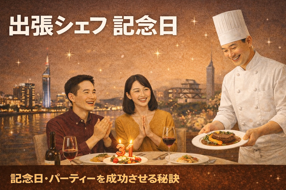 パートナーの誕生日、結婚記念日、あるいは二人の特別な節目…。「今年はいつもと違う、忘れられない記念日にしたい」そう思っていませんか? レストランも素敵ですが、人混みを気にせず、二人だけの空間で、最高級の料理を心ゆくまで堪能できたら、どんなに素晴らしいでしょう。そんな夢を叶えてくれるのが「出張シェフ」です。自宅にいながら、まるで一流レストランのような特別感を味わえるだけでなく、準備や後片付けの手間も一切なし。この記事では、2026年の記念日を最高の一日にするための出張シェフの魅力、賢い選び方、そして利用の流れまで、あなたの疑問をすべて解消します。さあ、出張シェフと共に、記憶に刻まれる特別な一日を創り上げましょう。