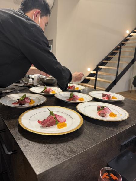 家庭用キッチンで、限られた調理器具にもかかわらず見た目も素敵なお料理がでてきて、さすがプロという感じでした。